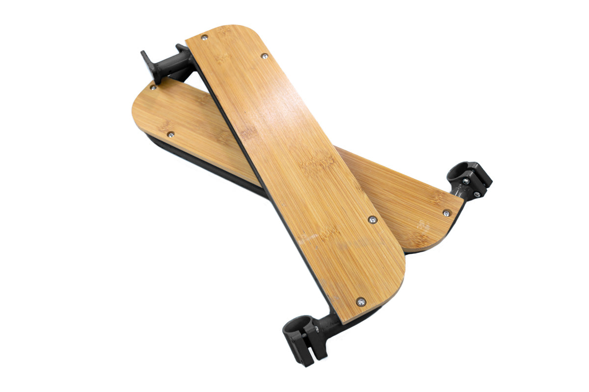 Provide added comfort for your passengers and support for your cargo with Blix Running Boards. Easily mounted to the Packa Genie, and accented with bamboo decks, this accessory provides the perfect place for feet and bags to rest during rides.