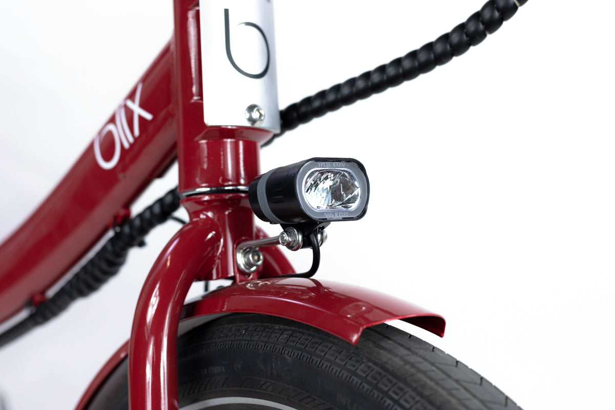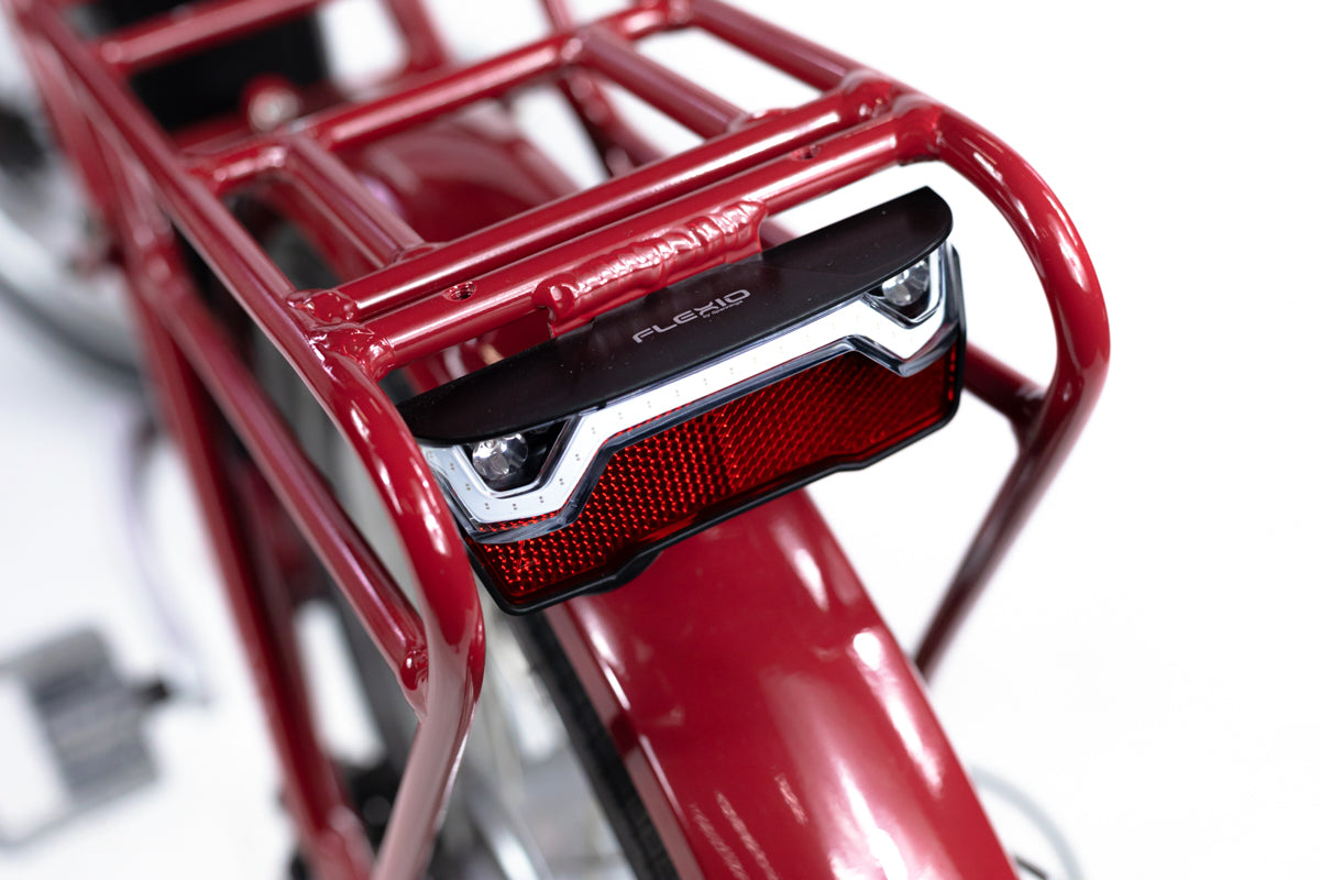 The front and rear lights are integrated into the frame and powered by your bike’s battery. Activated during your ride, the rear light also has a built-in reflector and brake light that lights up when you brake.